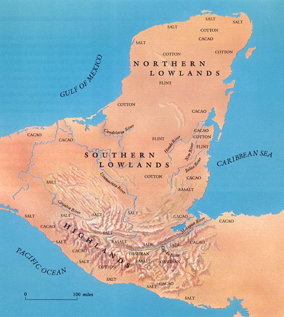 This latter area marks the transition between the high parts of the Maya area and the great limestone plain that constitutes the Yucatan peninsula, a region known as the Maya lowlands.